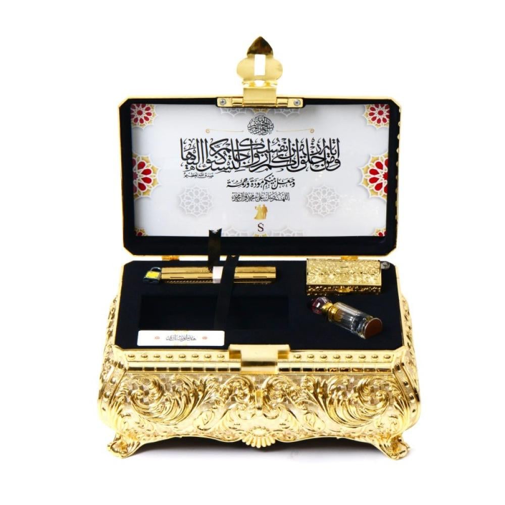 طقم مهر مطلي بمعدن مذهب يحتوي على :