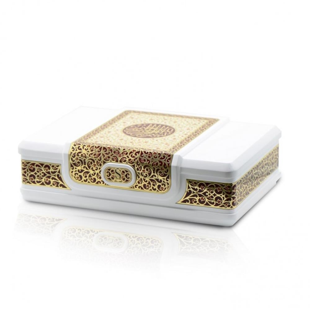 It is a wooden box, handmade in Indonesia, with Arabic embroidery.