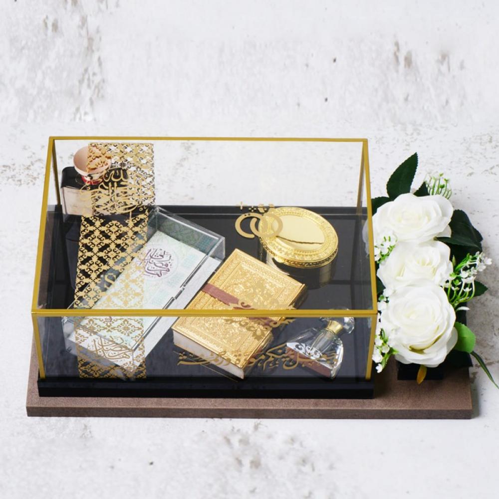 Acrylic Dowry Box (Black Paradise of Roses) in Black. You can order the box to present the dowry with several wonderful contents that your bride will love.